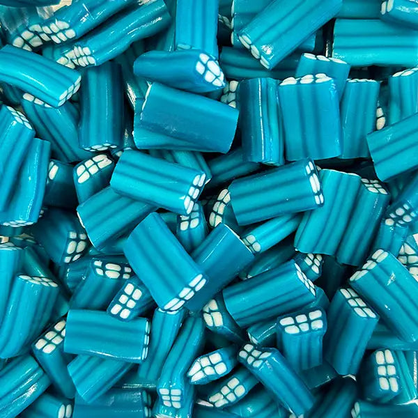 Sirop de glucose-fructose, sucre, amidon, farine de blé (gluten), sirop de sucre inverti, eau, acidifiants (E330), amidon de pomme de terre, maltodextrine, humectant (E422), correcteur d'acidité (E332), graisse végétale (palme), gélatine de bœuf halal, arôme artificiel, colorant (E133), agents d'enrobage (huile végétale : palme), émulsifiant (E322).