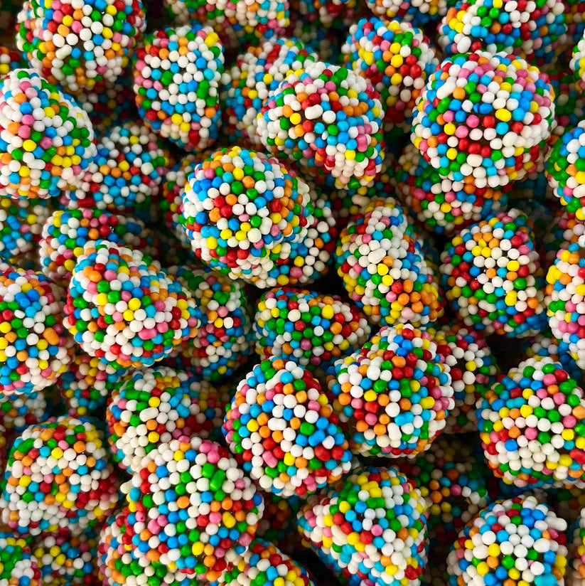 Sirop de glucose, eau, sucre, amidon modifié de blé, gélatine de boeuf halal, amidon modifé de pomme de terre, acidifiants : E330, E270, arômes, agent d'enrobage : huile végétale (coco), colorants : E110, E102, E129, E133. Allergène : contient du gluten.