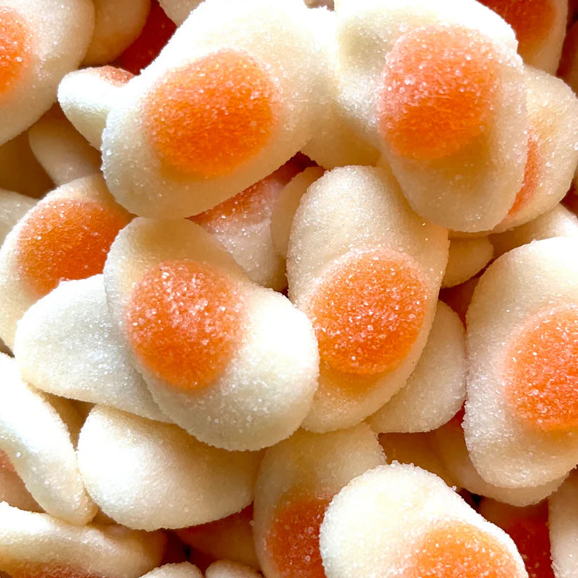 Sirop de glucose, sucre, eau, gélatine de bœuf halal, amidon modifié de pomme de terre, E270 E 296 arôme artificiel monastère du glycérol E471, huile végétale (coco, karité) , colorant E100, E129