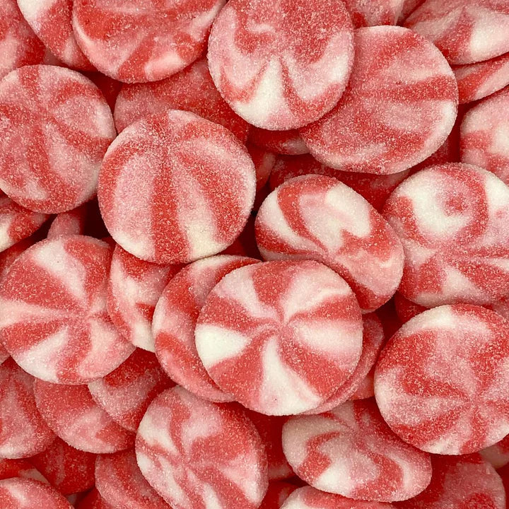 Savourez les délicieux bonbons spirale fraise crémeux et sucrés de DAMEL. Halal, en forme de cercles roses et blanches, une tentation irrésistible !