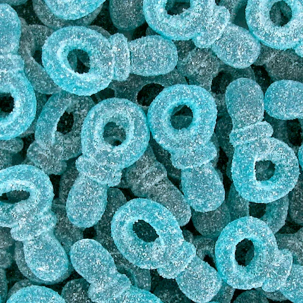 Sirop de glucose, sucre, eau, gélatine de boeuf halal, amidon modifié de pomme de terre, acidifiants : E330, E270, E296, arômes, agent d'enrobage : cire de carnauba, colorant E133.